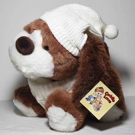 Vintage stuffed dog from the 90s, bought new at the time (I'm the original owner). Never played with. Sat on a shelf for a short time, then stored away with other stuffed animals. Still in new condition, with fluffy fur. I don’t see any flaws.