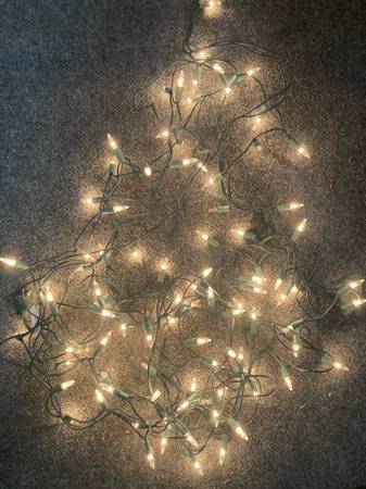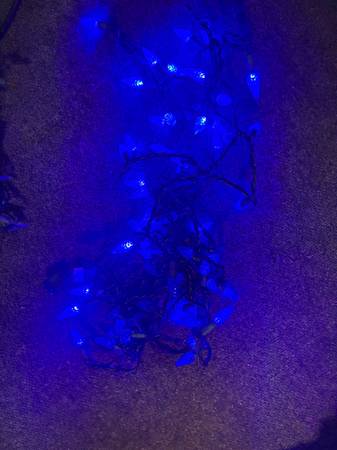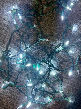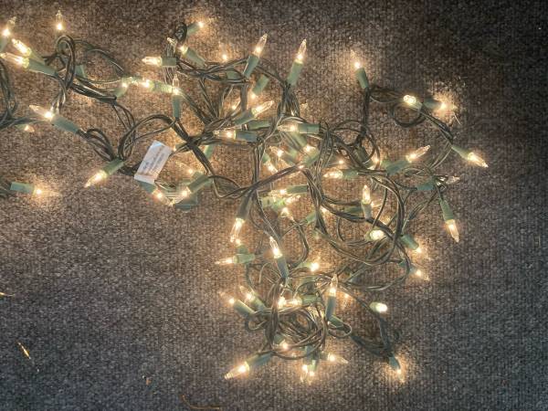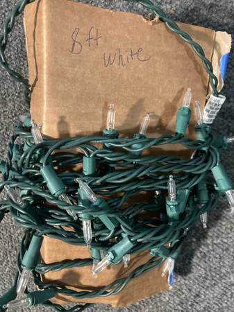 Outdoor light sets with clear, yellow , blue, multicolored bulbs and green wire. The lights are suitable for both indoor and outdoor use. 8 ft to 20ft New condition $5-$10 depends on the size