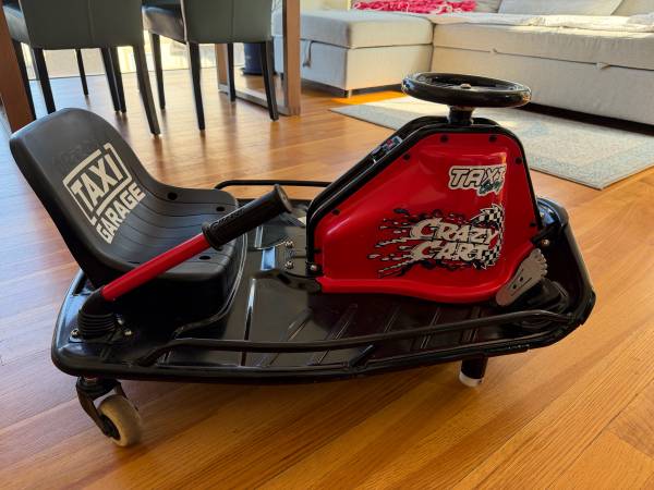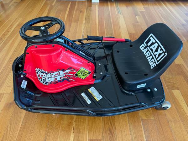 Razor Crazy Cart, 24V Electric Drifting Go Kart with variable speed (up to 12 mph) and drift bar for controlled drifts.