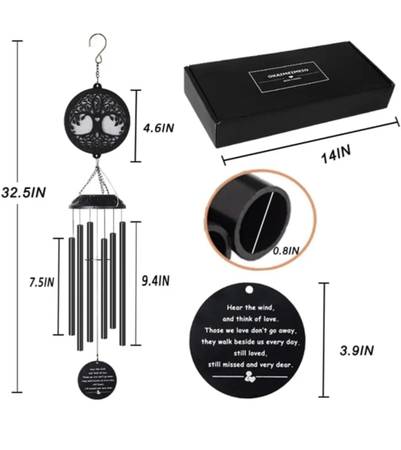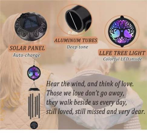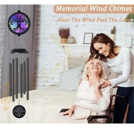 Solar Tree of Life Wind Chimes, Memorial Gift for Mom, Wind Chimes for Outside, Sympathy Wind Chimes for Loss of Loved One, Condolence Gift, Outdoor Garden Decor