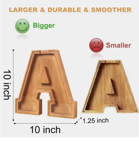 Wooden Letter Piggy Bank for Kids Boys Girls Large 26 Alphabet Money Bank Personalized Custom Name Transparent Saving Coin Bank, Perfect Christmas,Birthday Gift for kids Adults and Home Decoration (A)