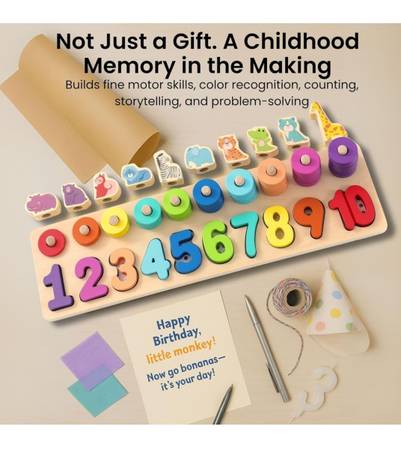 Wooden Number Puzzle – 1 Year Old Girl Gifts, Educational Toys for 1 Year Old, Wooden Puzzles for Toddlers 1-3, Learning for 2 Year Olds, Montessori Preschool Activities, Toddler Toys 1-2
