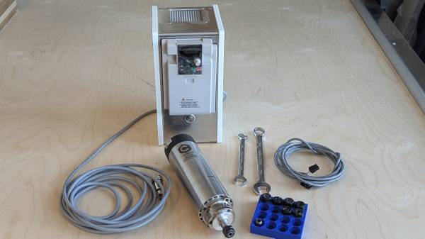Carbide 3D VFD Spindle in excellent shape. Recently upgraded CNC and no longer need this spindle. Comes with all original parts plus extra collets, 1\8", 3/16", 1/4", 3mm, and 6mm. Also 6 collet...