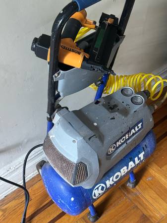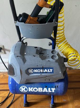 Kobalt 5.5 gal compressor in great working conditions with non working finish gun , Finish gun needs fixing. Please call or TEXT - Prefered . First come first serve , $80 is final price .No checks , M,O, or trades . CASH in person ONLY. No Scammers ,Thank you.