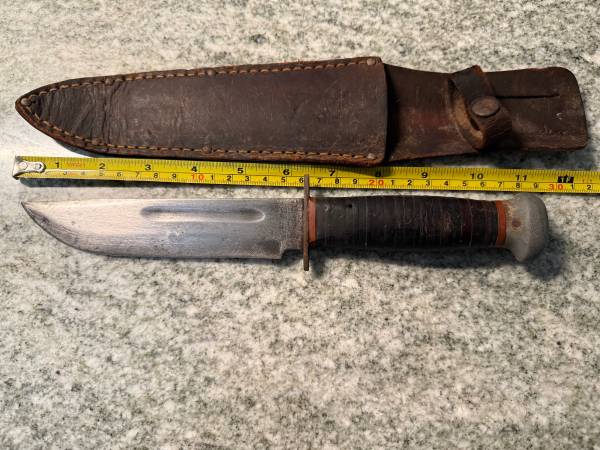 One hunting knife with holder. The blade is 6 inches long. The length of the knife, with the handle is 11 inches. Comes with belt holder. Pickup in Marine Park, Brooklyn.