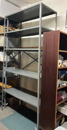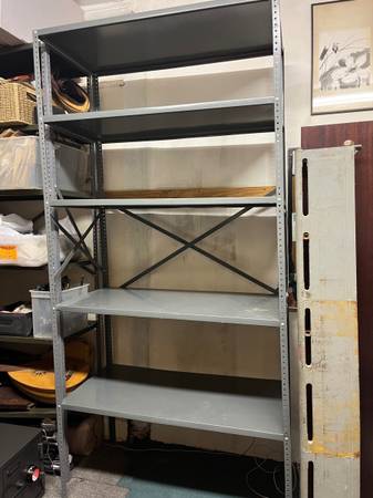 99” tall x 48” wide x 24” deep heavy duty industrial steel shelving, grey color.