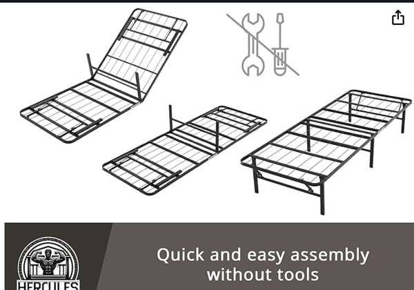 Hercules Metal Bed Frame 14-Inch Platform Bed Frame, Easy Assembly Mattress Foundation, Bed Frame No Box Spring Needed, Heavy Duty Foldable Bedframe, Noise Free - King, Black