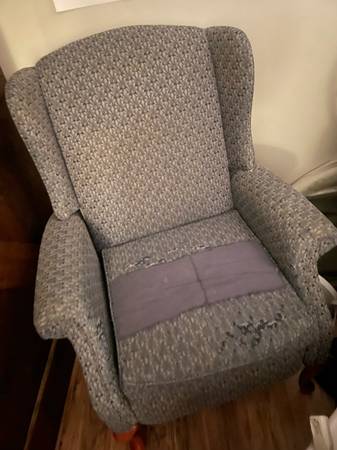 Recliner in good working condition. Fabric is in bad shape and could use a new slipcover.