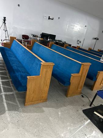 FREE - must have a van or truck to pickup. 18 Upholstered benches / pews measuring 10’x2’ Keywords: church synagogue mosque non profit community center 501(c)3 school charter