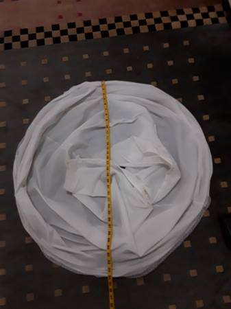Hoop slip for wedding gown or costume, 2 hoops, drawstring waist, some fraying at opening connected with drawstring, not visible when worn, 17 inches laid flat at waist, 34" around, adjustable.