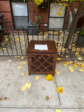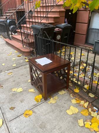 One solid wood table, outside and ready to be taken in Bed Stuy. Message for the address if interested.
