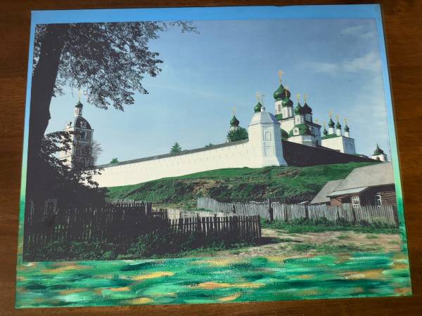 This is a collage like painting it I a painting on top of a painting, It is called ”RUSSIAN SUMMER” it is signed and dated by the artist if you are interested let me know.