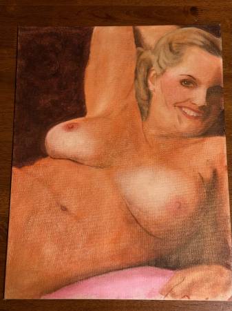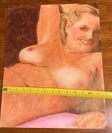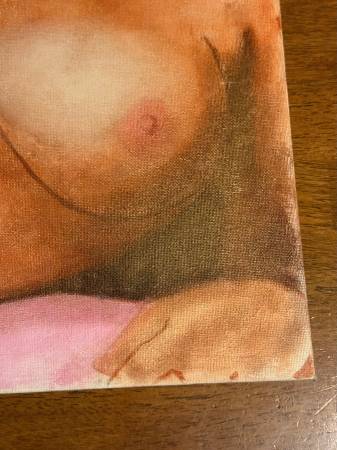 This is a vintage risqué portrait painting on board not wood, it needs to be framed, please note market place has restrictions so I had to edit the photos if you wanna see the unedited photo let me know and I’ll send it to you, if you are interested let me know.