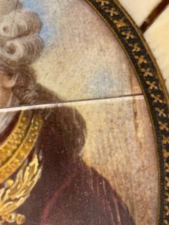 this is a antique miniature painting of King Louis XVI the painting is on bone if is signed. but the glass is damage and needs to be replaced. If you are interested let me know