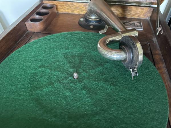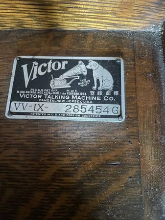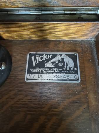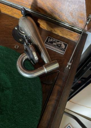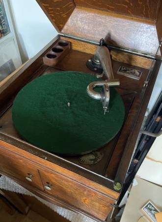 A beautiful, beginning of last century Phonograph, Victor Talking machine, record player for 78 rpm record, shellac, records.