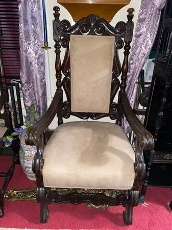 Set of 2?Antique Jacobean High back His and Hers Chairs. Comfortable - $350 (Bx)