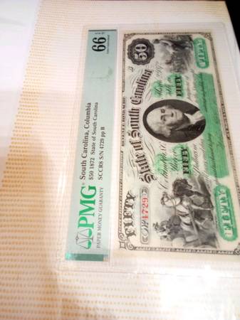 $20 & $50 South Carolina Columbia 1872 66 epq gem uncirculated.. set $1150