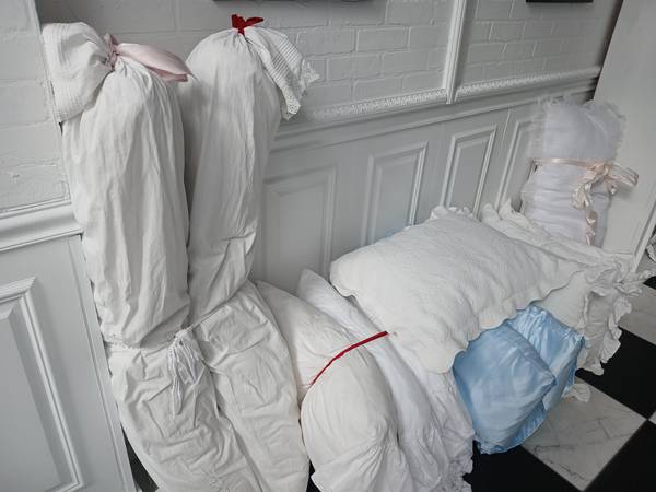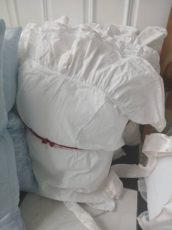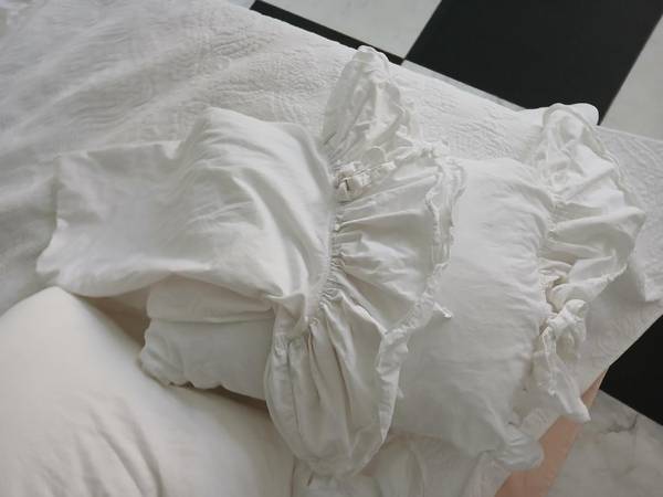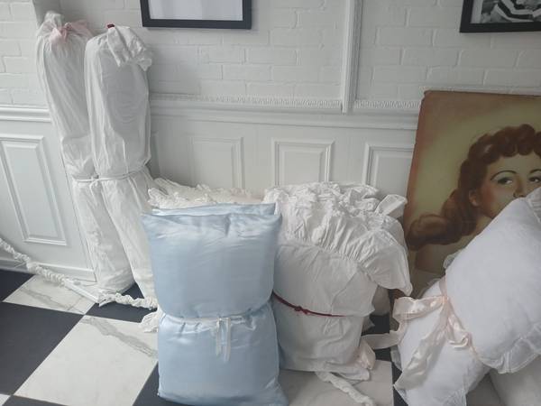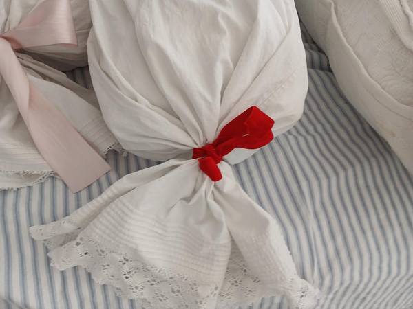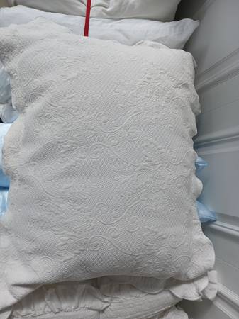 these are pure white cotton shabby chic pillows with inserts and have big bows. 2 vintage lumbar white cotton pillows. ...they are in mint condition and great throw or decorative pieces.