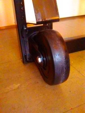 The heel of your chair will rest at the angle that is down near the front wheels of this dolly.