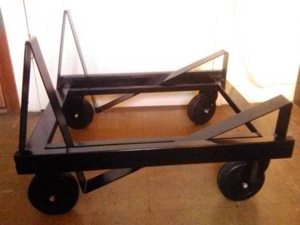 This dolly is used for non-folding chairs that can be stacked one-on-top-of-the-other.