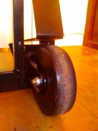 This dolly is made of steel, so it is heavy. The wheels are made of hard rubber.