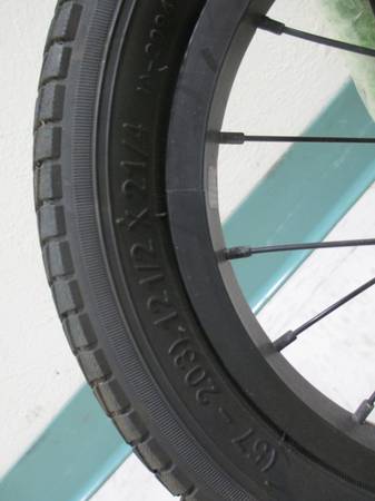 REI Co-op Cycles REV 12 Kids balance bike bicycle 12" inch wheels with proper inflatable rubber tires in excellent condition. Adjustable seat height. With foot rests. On the pictures you see that the frame is wrapped in plastic film to protect the finish. It's brand new underneath, if you need to see it, I can unwrap it. Makes it very easy to transition to a pedal bike.