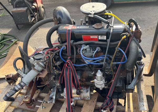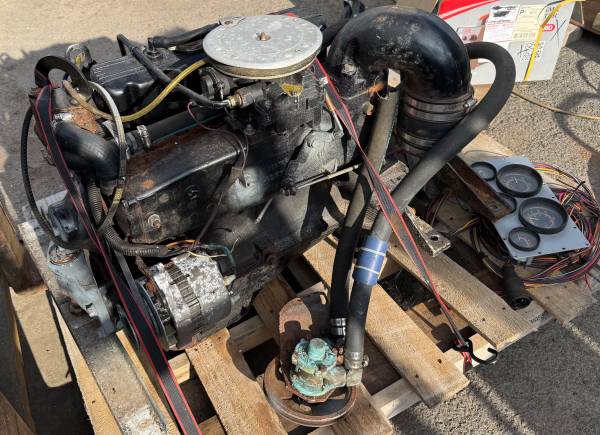 Nice Mercusier 3.0L 140HP Gas Engine W/ Velvet Drive 1:1 Gearbox. I have the wire harness and panel for it. Low hours. Removed form wood boat that was being decommissioned due to needing hull repairs. Roared to life with a jump pack and some gas poured into the carb. (Didn't pull old fuel into carb from old fuel tank). On a pallet ready to go! I can load into your truck with a forklift.