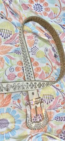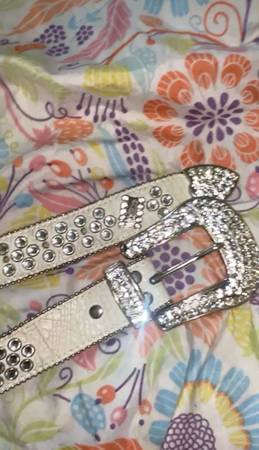 Authentic B.b. Simon white belt size 32 all Swarovski crystals in tact great condition just need to be cleaned a bit lowest id do is $100 today. Really want to sell asap