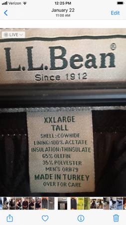L L Bean Men's Suede Leather Coat, Dark Brown, 2 Extra Large-Long, never worn, new condition. Pick up & cash only.