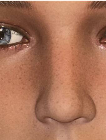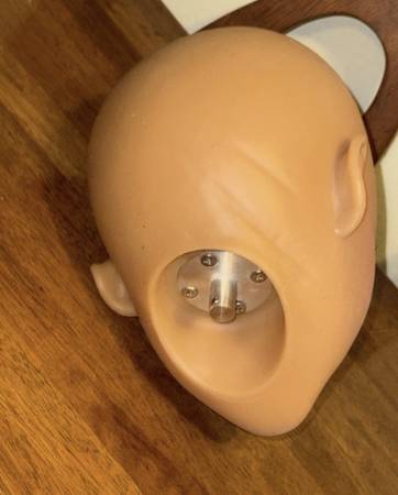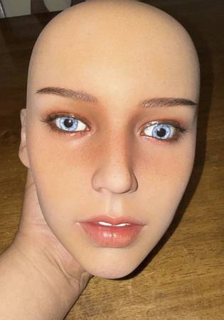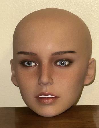 This is a beautiful soft silicone mannequin head with nice realistic detail, beautiful blue glass eyes, not sure if the eyebrows and the eye lashes are real hair it looks like it. The face has some freckles the Head has some weight to it if you Are interested let me know.