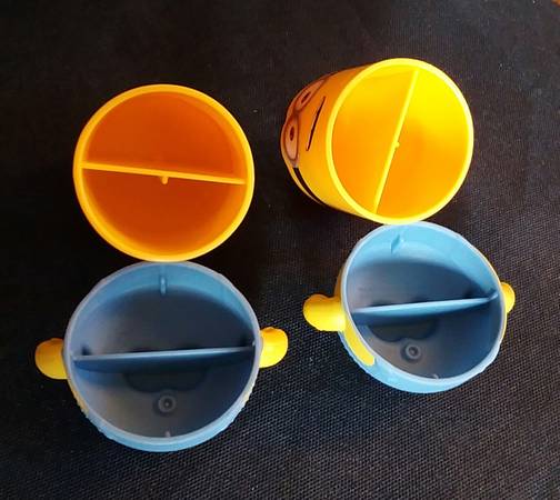These two cute Minions are slightly less than 3" tall. They do not have moving parts. They are made of two parts that can be separated. They look like salt and pepper shakers, but they are not. The...