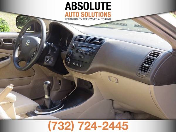 Honda Civic LX 2dr Manual 5-Speed Sedan, Please Contact Us At(732) 724-2445 With Any Questions And Check Out Our Full Inventory At WWW.732AUTO.COM We At Absolute Auto Solutions Offer Wholesale Prices To The Public! All Prices Posted Are The No Gimmick Cash Wholesale Price! We Also Accept Credit And Debit Card. Financing Also Available For Most Vehicles! Contact Us Today! nissan toyota honda lincoln cadillac chevrolet ford mazda kia mitsubishi hyundai volkswagen buick gmc porsche bmw mercedes lexus volvo dodge chrysler taurus corolla camry accord civic fit elantra sonata impala optima corolla sentra focus elantra cobalt cruze
