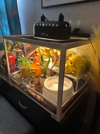 No cracks or chips. In very good condition. Will sanitize and clean prior. Delivery available. I also have reptile hides for 5 each if you need them. Does not come with any accessories pictured. You only get the tank. This same tank is being sold on Amazon for over 400 right now.