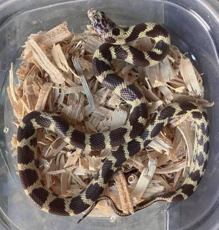 21 to 25 inch Hatchling Female California King Snakes. She is Possible Het Ghost, Lavender, Corwin Hypo and Albino eating Frozen Thawed pinkies. Asking a small rehoming fee of 175.00