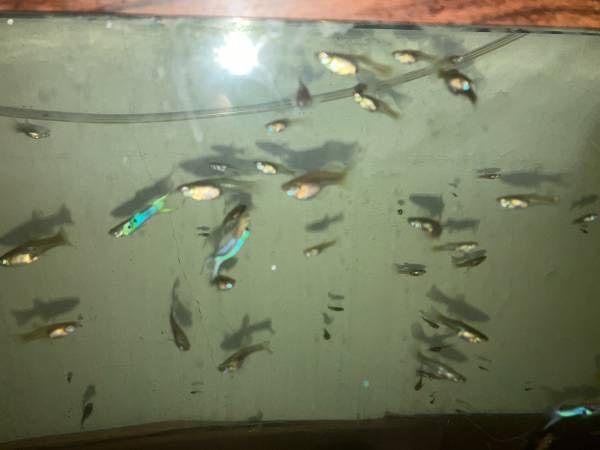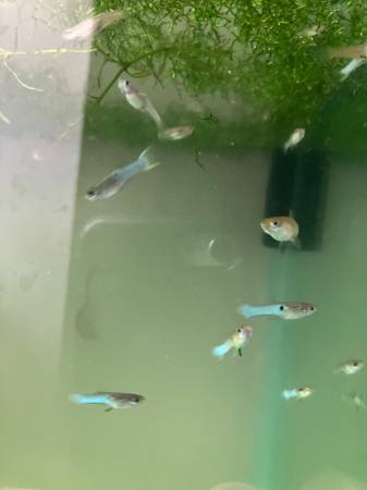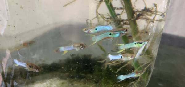I have Male and female Japan Blue Endler / Guppy Hybrids. Some males are just getting color and some have color but they are not full grown. They are 1" to 1.5" in size. The pictures are young adult males from my young breeding group that have not fully developed tails. The males you will get will vary once fully developed. Some will have bottom swords, double swords or no swords. They are 15 bucks a trio ( 1 male and 2 females ) . Take 2 trios ( 2 male and 4 females ) for 25 bucks or 10 or more fish are 3.50 bucks ea