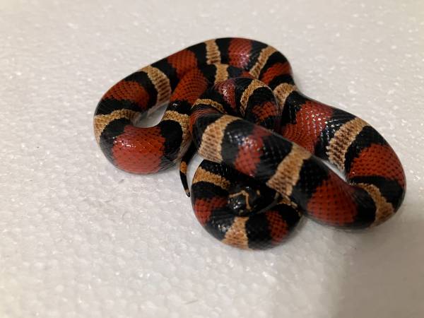Female 2024 Pubcorns ( Corn Snake / Pueblan Milk Hybrid ) She is a F1 X F2 cross. Both parents are 50/50 crosses. I was holding these back for myself but I'm selling a lot of my collection off due to lack of funds so before the animals suffer I want to find them good homes.