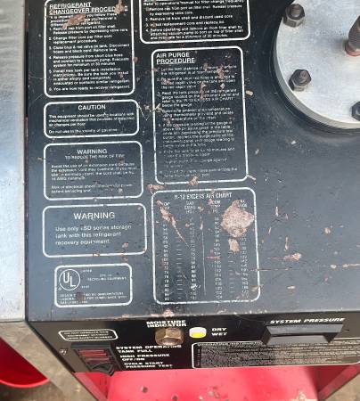 For sale by owner Snap-On 3000 refrigerant recovery recycling center durable and compact: R-12 115V 400PSI