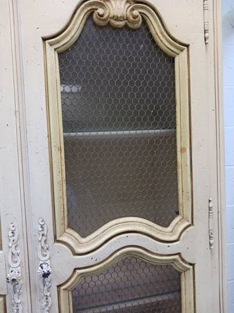 Would like to move this piece out. Not sure of its history. 2 shelves are not original. Missing one doorknob. 7' tall 3' 2" wide 1' 7" deep Will accept a donation.