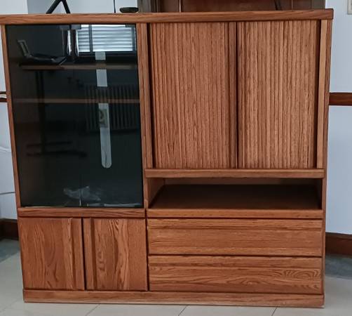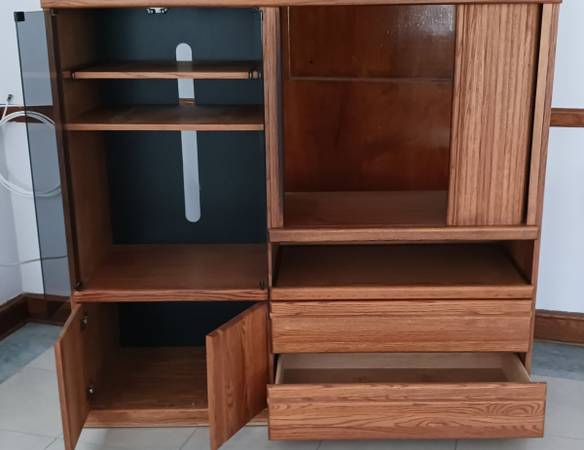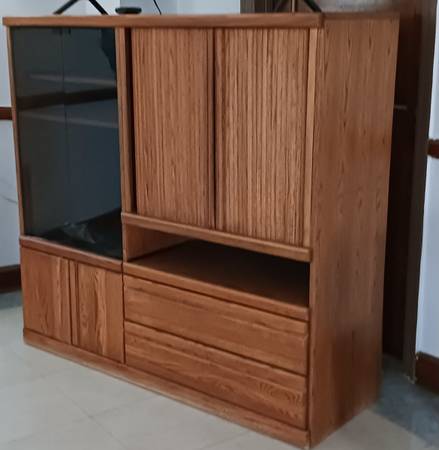 Width: 4' 7" Height: 4' 4" Depth: 1' 6" 2 compartments with doors 1 compartment with sliding door 2 drawers Needs to move to a good home soon