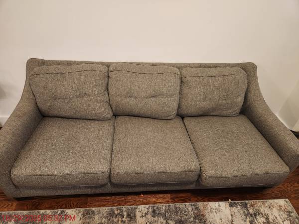 In clean and well-kept (No stains) It was purchased new.. 2× Piece living room set Both are gray in color 7ft in length couch Condition is 9/10 Price is Negotiable Cash or zelle
