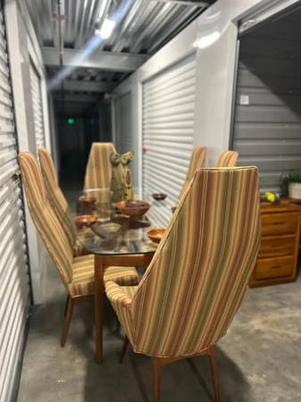 Chairs: 19.5” wide x 25” deep x 48” high, 19” seat height, 17” seat depth