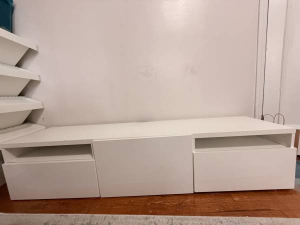 Besta tv bench cabinet-$60 assembled but lightly used Alex drawers-$20 Mirror-$40 All-$100 OBO Pickup in elevator building