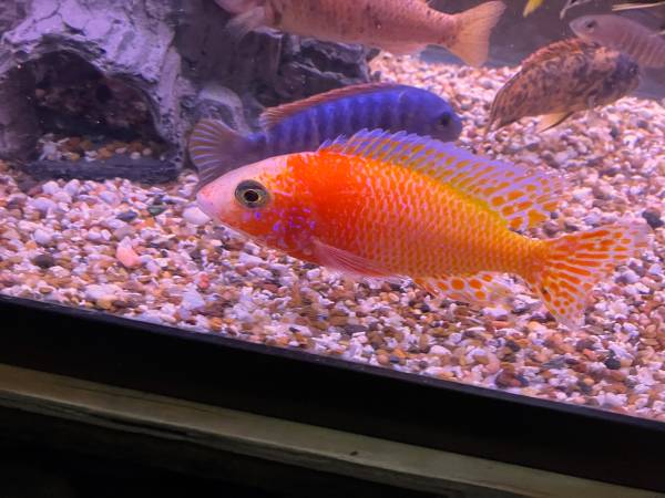 I have some nice male and female hybrid peacocks 2.5 to 6 inches.These are nice home bred fish bred for color not Juiced up imports. I 'm growing them up and picked out the ones I wanted to keep back for my show tank. I like to find good homes for them Asking a small re homing fee of 10.00 to 40.00 ea