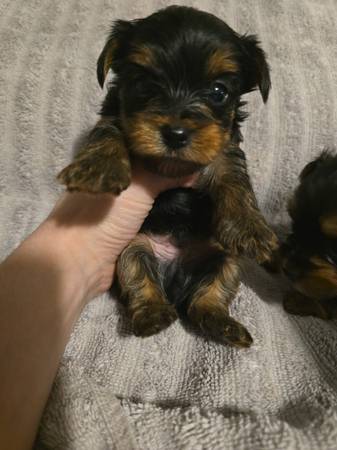 I have three boys and one girl available.Please pm me for pictures info toy yorkie puppies 2 weeks old born November 13 will be ready for there forever homes by December 23 taken deposit now perfect...