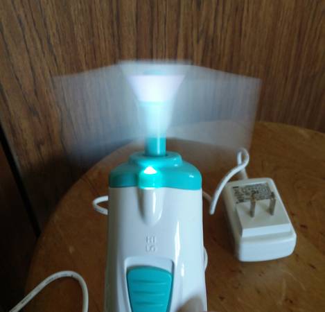 When you push the button on the side of the storage case, gentle air flows out of the "mouth".