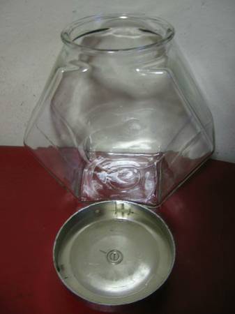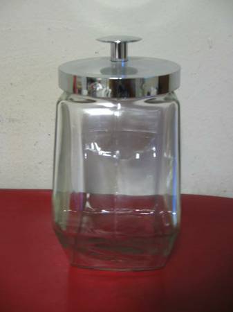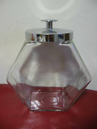 This is a glass cookie jar, with a chrome-plated plastic lid.