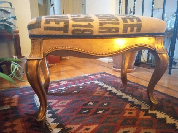 Antique gilt goldleaf stool or bench with new upholstery. Please click on "More Ads by this User" link to see all my CL listings. Sharpe1 Accent piece, vintage, gold leaf, Hollywood Regency, mid...