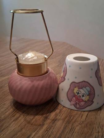 Tilting Make up mirror clown design made of porcelain. $5 Porcelain Candle Lamp-Clown design (candle included) Very cute, clown design $5 Please let me know which one you are interested in or both....