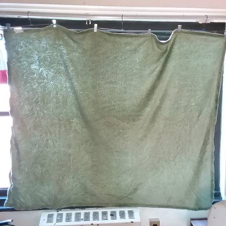 This blanket is like a towel. The material is terry cloth. It feels very soft. This blanket measures 60" x 40". It is lightly used. It is in very good condition. It has been washed clean. It is...