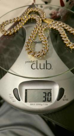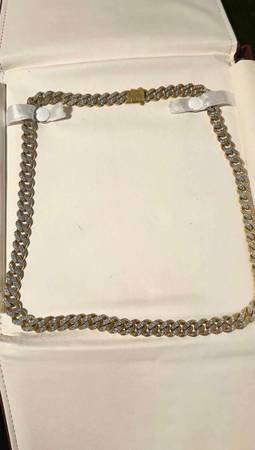 22inch 9.5mm natural diamonds necklace. Clarity rating is SI1, diamond color I, 10k Yellow Gold 30 grams, Diamond carrot weight 3 1/7. Price at Helzburg Diamonds is 9,500 I bought for 9,000. Nothing wrong with it just brought it it for a check up for missing stones and a clean up. I have no use for it just sits in a box can only use it on weekends.